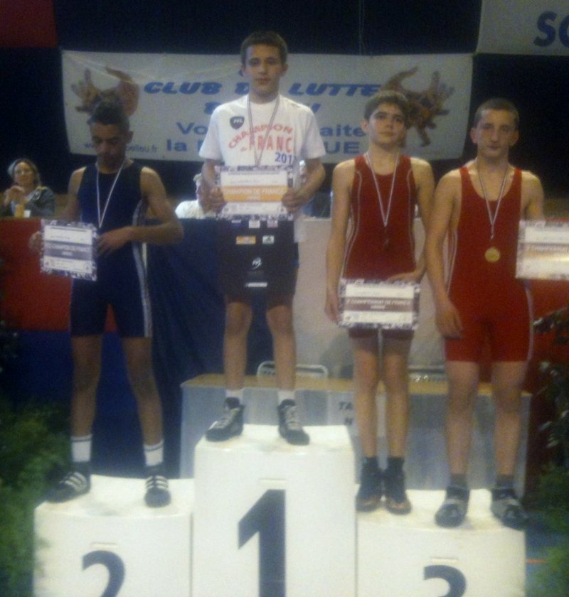 En Cadets 69 kg, Johnny BUR CHAMPION de FRANCE, réalise le doublé Libre-GrécoEn Cadets 54 kg, Alaoudin DJABRAILOV, Médaille de BronzeEn Minimes 46 kg, Hovhannes SARGSIAN, Médaille de BronzeEn Minimes 66 kg, Daniel MAZAEV, 5ème Félicitations aux lutteurs et à l’équipe technique
